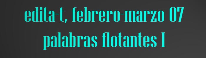 No se trata de deplorar. El objetivo de esta página es el de abrir puertas, dar la oportunidad a una forma de expresión, aquella que navega en la virtualidad. De ahí el nombre de la convocatoria, de ahí el esfuerzo por mantener este sitio dentro de la interconexión que facilita la Red. La obra elegida para la portada ha sido en este caso "Feliz 2007", de Emerenciano da Silva, un poema visual que, curiosamente, podría hallarse de igual forma entre las páginas de un libro. La imagen rezuma intemporalidad, insumisión y sincretismo. En la elección hay una intención reivindicatoria sobre la memoria litográfica, el imaginario postal, la sencillez de la cartelería combativa. Todo ello como armas de palabra frente a la horrenda visión de la veloz actualidad.